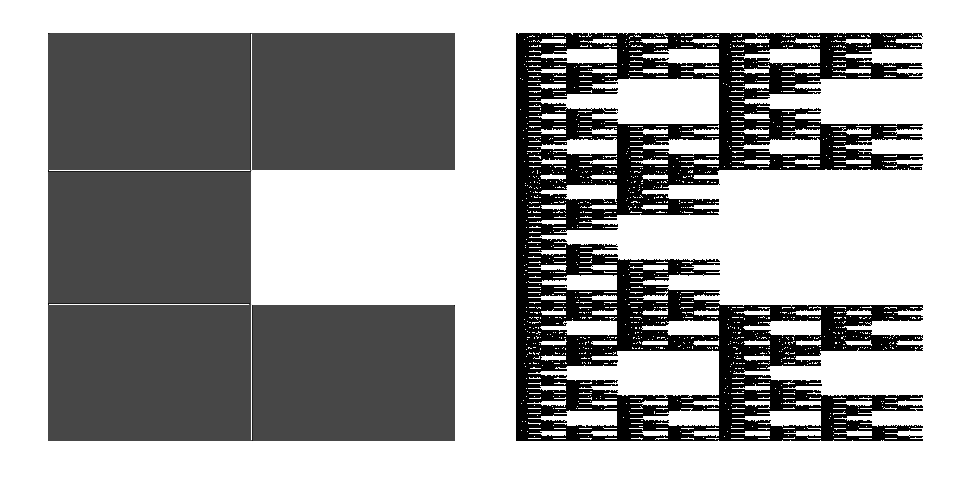 如果图的一部分是整体的小复制品,则该图被称为自相似。…如果图形可以分解为整体的精确副本,则图是严格相似的。任何任意部分都包含整个数字的精确副本。