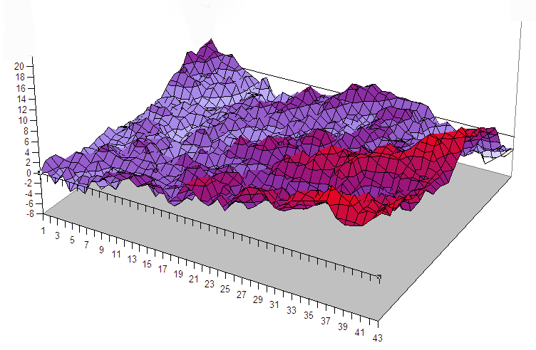 例如,在三维情况下,两个变量 XXX 和 YYY 作为坐标给出,任意两点 (x1,y1)(x_{1}, y_{1})(x1,y1) 和 (x2,y2)(x_{2}, y_{2})(x2,y2) 之间的高程函数可以设置为具有平均值或期望值随着 (x1,y1)(x_{1}, y_{1})(x1,y1) 和 (x2,y2)(x_{2}, y_{2})(x2,y2) 之间的向量距离增加。但是,有许多方法可以定义高程函数。例如,可以使用分数布朗运动变量,或者可以使用各种旋转函数来获得更自然的表面。