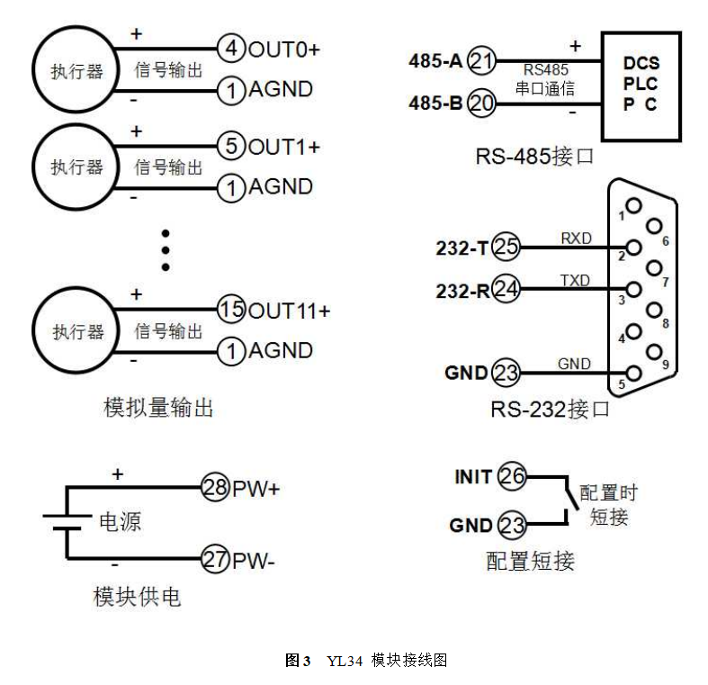YL34系列产品实现主机RS-485/232接口信号隔离转换成标准模拟信号,用以控制远程设备。YL34系列产品可应用在 RS-232/RS-485总线工业自动化控制系统,4-20mA,0-5V,0-10V等标准信号输出,用来控制工业现场的执行设备,控制设备以及显示仪表等等。