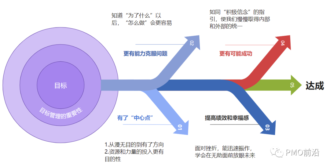 在项目工作中工作目标有很多:项目交付目标、需求完成目标、任务完成目标、里程碑目标、质量要求等等。项目经理需要帮助项目成员明确各种各样的工作目标,让大家知道谁要在什么时候完成什么事,推动项目成员朝正确的方向前进。