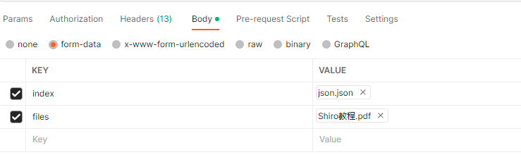 前端调用方式:需要使用表单(form-data)方式进行提交,content-type设置为:multipart/form-data