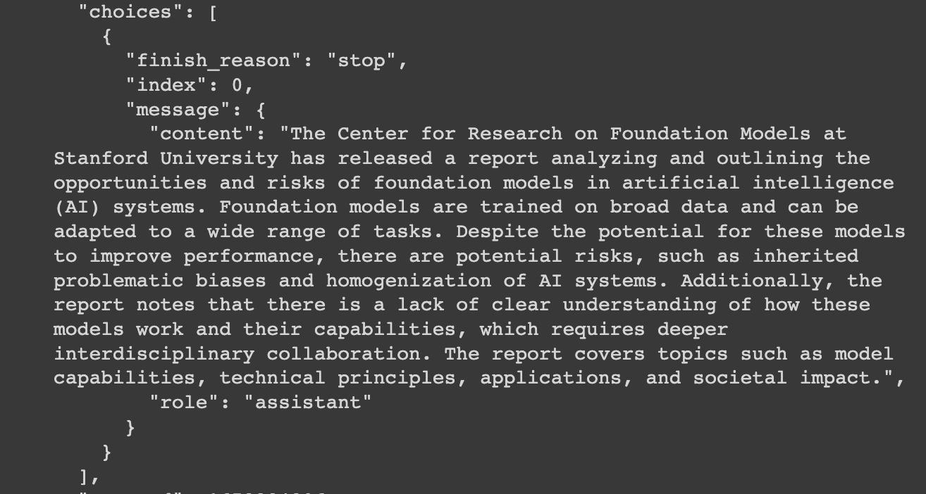openai.ChatCompletion.create(model="gpt-3.5-turbo",messages=[{"role": "system", "content": "You are a helpful assistant."},{"role": "user", "content": "Who won the world series in 2020?"},{"role": "assistant", "content": "The Los Angeles Dodgers won the World Series in 2020."},{"role": "user", "content": "Please generate a summary of the given article: {}\n\n ARTICLE TEXT HERE".format(' '.join(df['text'][0:200]))}]