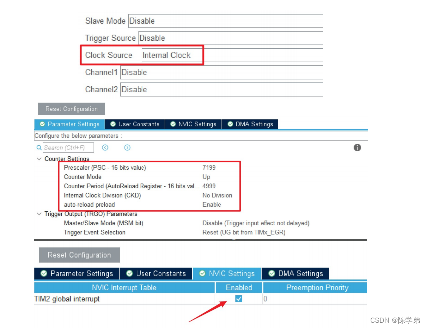 例如,要定时500ms,则:PSC=7199,ARR=4999,Tclk=72M