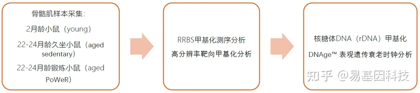2021年12月21日,美国阿肯色大学、德克萨斯大学和肯塔基大学的研究人员合作在《Aging Cell》杂志发表了题为“Late-life exercise mitigates skeletal muscle epigenetic aging”的Short Take研究论文,该研究通过使用简化甲基化测序(RRBS)、核糖体DNA(rDNA)和线粒体特异性甲基化分析、高分辨率靶向甲基化分析和DNAge™ 表观遗传衰老时钟分析对小鼠自愿耐力/阻力运动训练(渐进式负重轮跑,PoWeR)的可翻译模型,揭示运动可以延缓骨骼肌的表观遗传衰老。