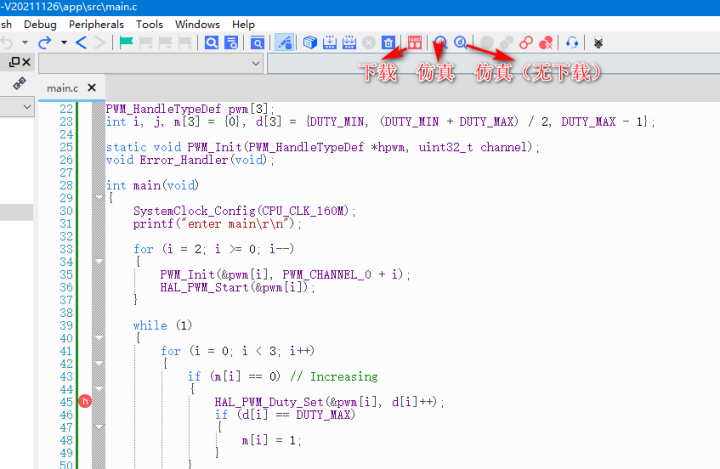 点击仿真,开始调试:
