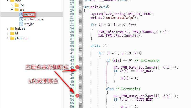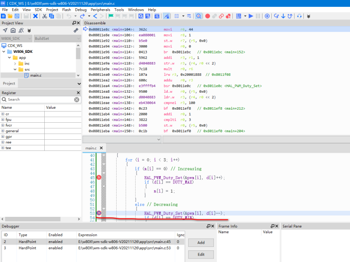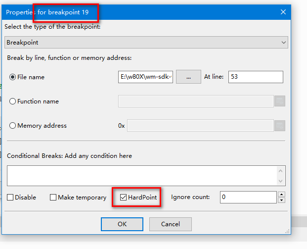 添加硬断点: