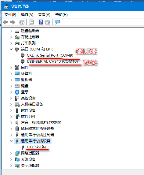 以WIN10系统为例,按win+X,选择设备管理器,可见CKlink已正常识别: