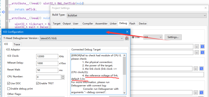 否则,会提示“the reference voltage of link, default 3.3v”:
