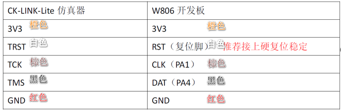 注意:CKLINK LITE的3V3须与W806的3V3相连,或者给W806开发板单独供电,两种方式均可。