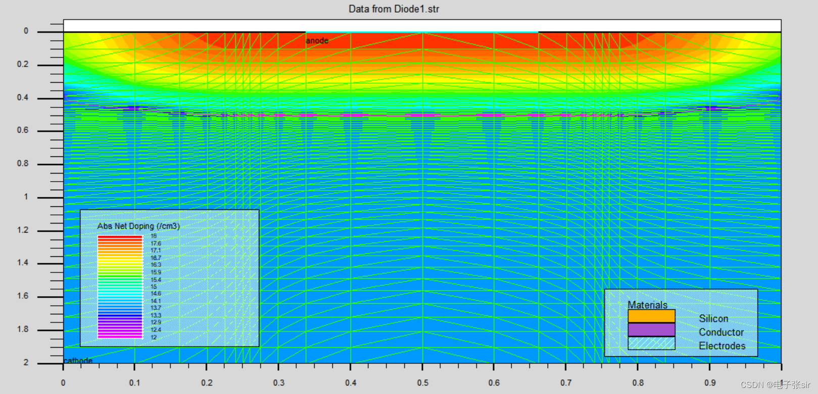 最后保存并调用tonplot绘制模型便可以看到PN结的仿真图啦!