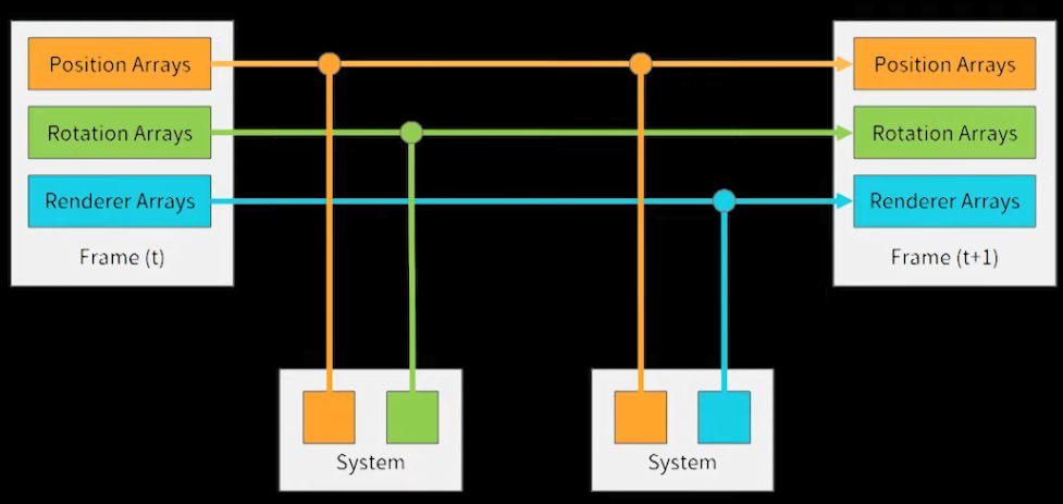 ECS 也肯定有Update , 比如从t 帧到 t +1 帧
