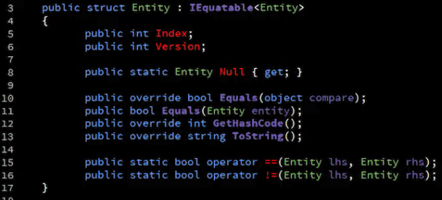 看看源代码中的Entity 。 struct 结构体。 64位索引 (2个32 位 int)。