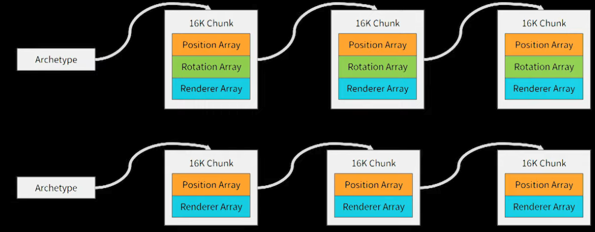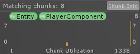 Chunk Info : Archetype组成: 8 bytes 大小, PlayerComponent (4bytes)