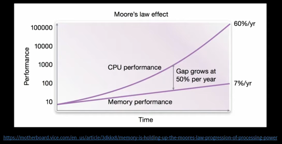每24个月翻一番。 CPU以惊人的速度变得很快。 但是现在内存好像成为了瓶颈。