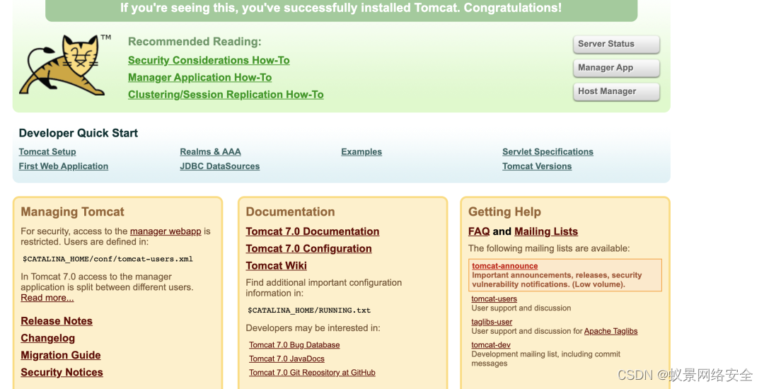 tomcat配置其实很简单,笔者这里使用的是macos环境,直接上官网找对应版本即可,除非tomcat漏洞,否则通常来说哪个版本应该都是可以的。