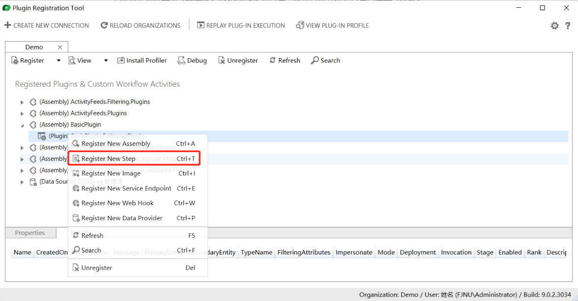 右键单击(插件)BasicPlugin.FollowUpPlugin,然后选择注册新步骤。