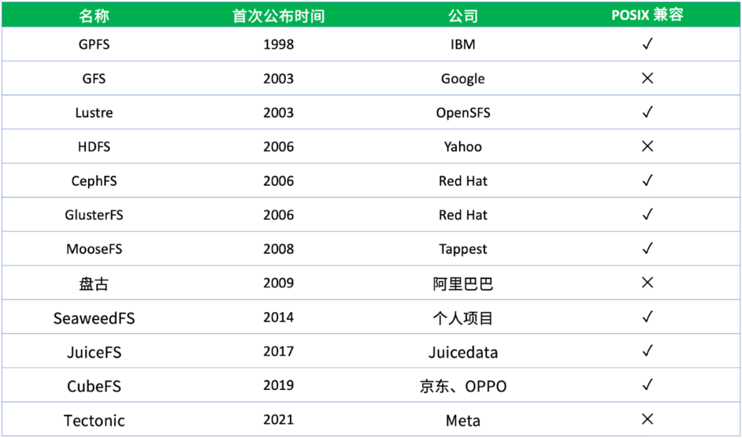上面列了一些大家相对比较熟悉或者使用比较多的分布式文件系统,这里面有开源的文件系统,也有公司内部使用的闭源产品。从这张图可以看到一个非常集中的时间点,2000 年左右有一大批的分布式系统诞生,这些分布式文件系统至今在我们日常工作中或多或少还是会接触到。在 2000 年之前也有各种各样的共享存储、并行文件系统、分布式文件系统,但基本上都是基于一些专用的且比较昂贵的硬件来构建的。