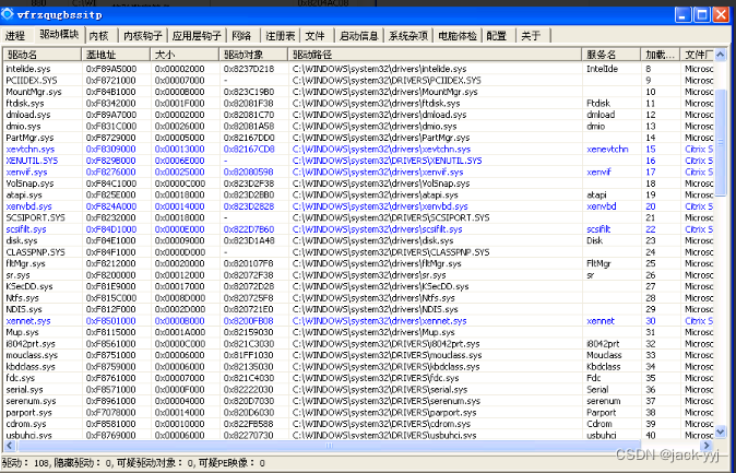 这里会显示一些驱动文件的具体位置,出处和在系统核心中地址等等,对于一些没有厂商出处的需要注意下。