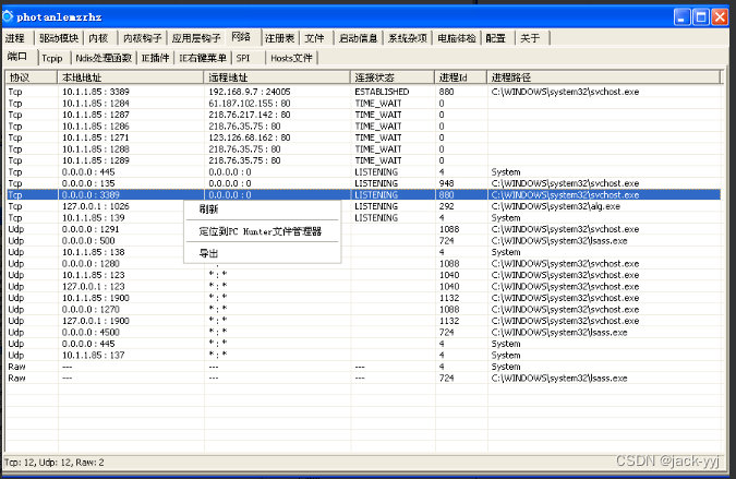 (5)EPROCESS:EPROCESS的地址。EPROCESS结构是系统内核管理进程对象的重要数据结构,熟悉windows内核的人就很熟悉此结构,通过该结构可以获得和进程相关的很多信息,不熟悉的话只要知道这个结构存在于内核地址空间就可以了。