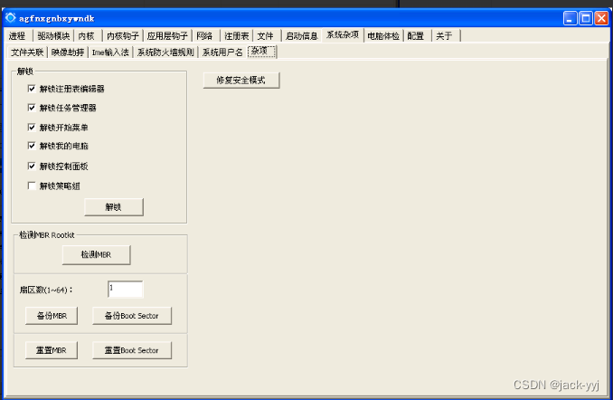 杂项里面是一些修复功能,可以用于杀毒完毕的善后或者被病毒破坏了一些设置的修复。