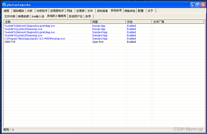 Windows自带防火墙的过滤规则,类型里的standard app 表示这是以程序文件,而 open port表示一个端口号码。状态栏中的Enabled表示允许联网规则,Disable表示禁止联网规则。少数病毒为了顺利连接外网,也会把自己添加到系统防火墙规则里。设置为Enabled。这样这些在访问网络系统防火墙就不会报警,而是直接放行。所以查看下规则,对于有误的及时修改删除也是很有必要的。