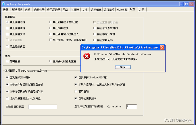 最后软件还提供了一些实用的小功能,比如,禁止创建进程、禁止创建文件、禁止创建注册表等功能在杀毒的时候十分适用,可以十分有效的限制病毒行为,让你手工杀毒更快捷。这里我勾选了第一个禁止创建进程,因为双击打开一个文件程序都会产生一个进程,所以这时候我们双击任何程序都会弹出错误或没有反应。