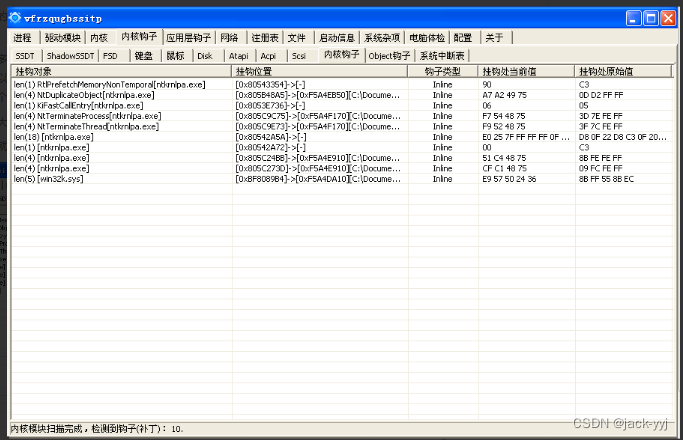 (1)驱动检测到的可疑对象,隐藏服务、进程、被挂钩函数 ---->红色