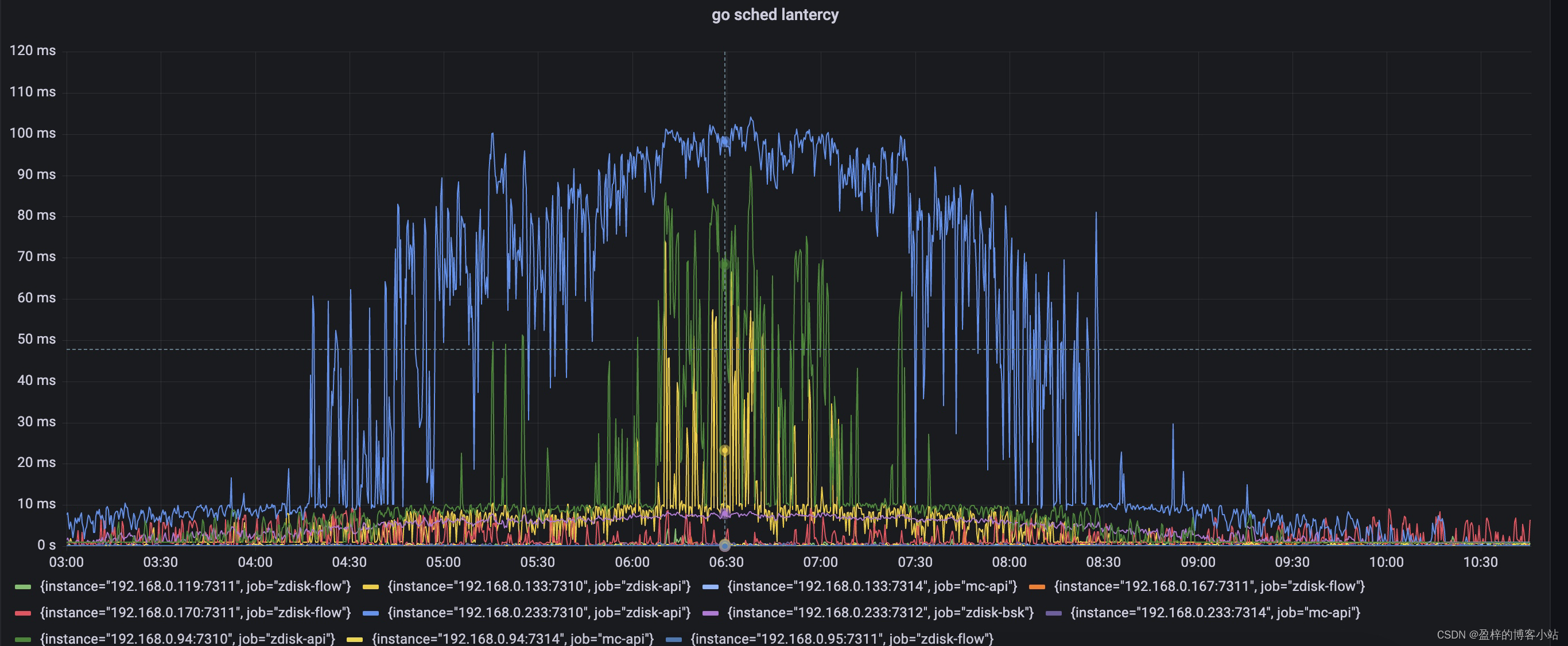 基于对昨天的分析,我怀疑到了cpu头上,如果cpu切换进程缓慢,协程调度缓慢,那么的确是有可能发生超时的。由于目前的监控缺少对协程调度延迟的监控,所以决定加上这一指标。