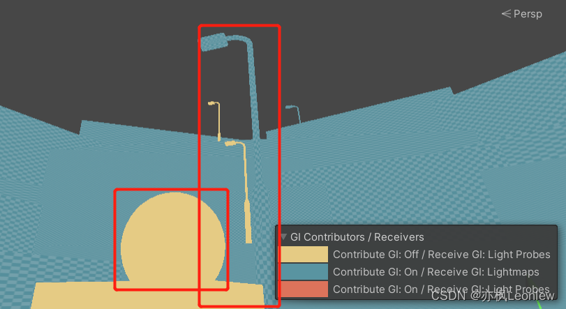 随后场景中会用不同颜色来表示场景中哪些是光线的贡献者,哪些是接受者。