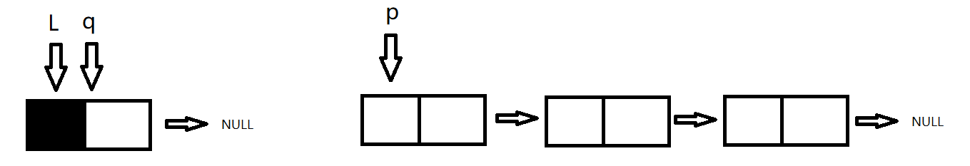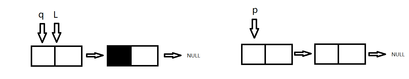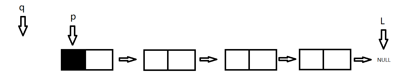 初始p指向头结点(p=L),原指针L指向尾节点的指向(L=NULL);
