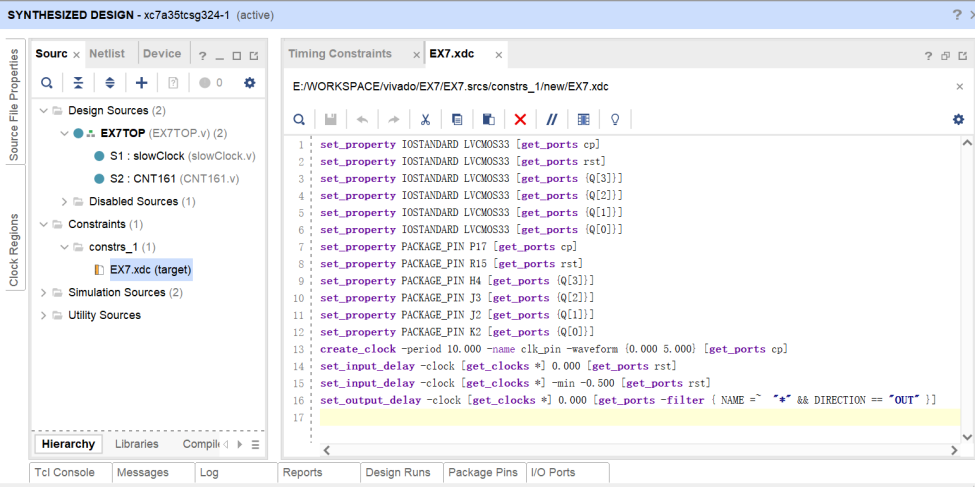 这时候如果打开Sources界面中的constraints,就可以看到XDC文件中增加了约束条件。