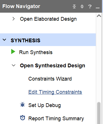 【a】选择在Flow Navigator 中选择Synthesis > Synthesized Design > Edit Timing Constraints。