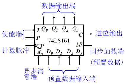 通用型的二进制计数器一般具备更多功能,例如可以增/减计数、预置初值、同步清零、暂停等。74LS161就是一种常用的可预置4位二进制同步加法计数器。其功能表如下图表: