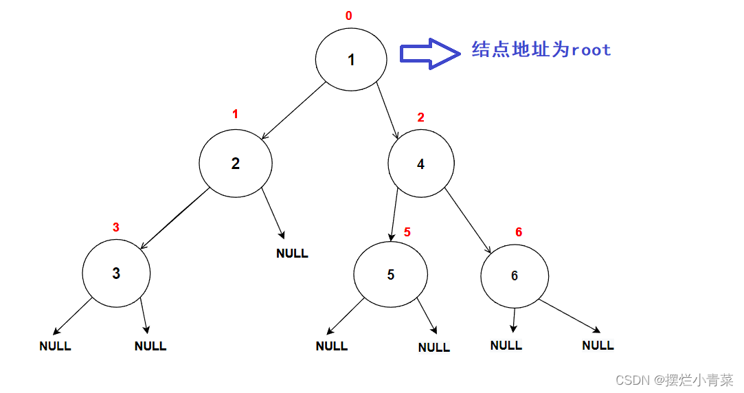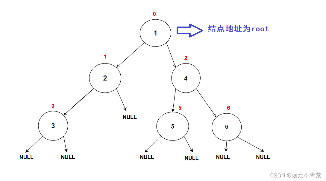 - 通过这个递归函数,我们可以遍历二叉树的每一个结点:(假设根结点的地址为root)