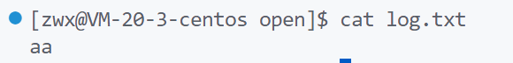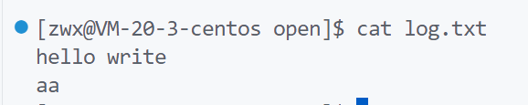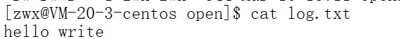 现在log.txt已经写入了"hello write",那么我们看一下O_APPEND和O_TRUNC的不同点:
