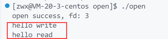 {umask(0);int fd = open("log.txt", O_RDWR | O_CREAT, 0666);// const char* str = "aa\n";// ssize_t s = write(fd, str, strlen(str));printf("open success, fd: %d\n", fd);char buffer[64];memset(buffer, '\0', sizeof(buffer));read(fd, buffer, sizeof(buffer));printf("%s\n", buffer);close(fd);return 0;