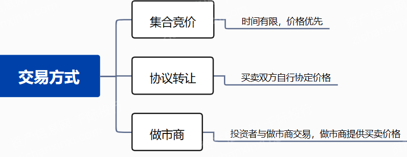 目前,新三板主要有集合竞价,协议转让,做市商制三种交易方式。