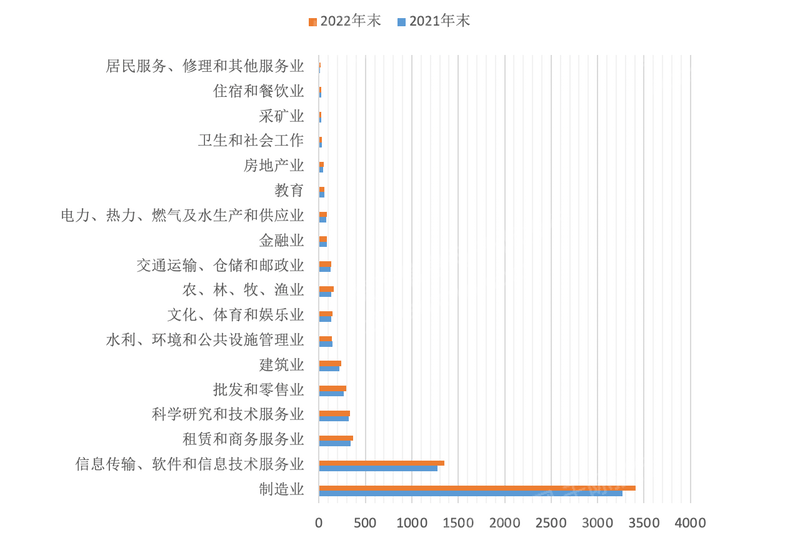 其中制造业公司数目为3268家,占比50%,相比于2021年减少142家,整体来看,2022年企业较2021年减少352家,整体数量较为稳定,并且各个行业的占比也基本保持问题。更多的实体经济企业融资的便利,也将为经济发展提供更加牢固的基础。2022年信息行业企业共1275家,占比约为19%,较上一年度减少76家。