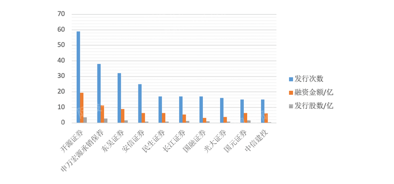 数据显示,目前参与新三板定向发行的券商主要有,开源证券,东吴证券,申万宏源承销保荐等,其中开源证券在该项业务中占比较大2022年共参与定向发行59次,融资规模19.36亿元,共发行股票3.56亿股。