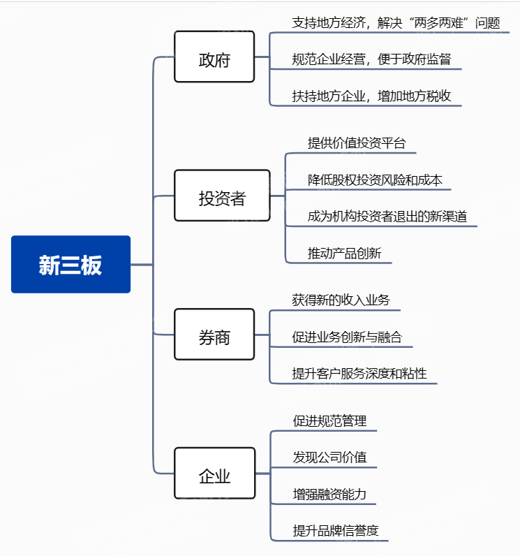 新三板的主要参与者包括政府,投资者,券商,企业自身。其服务本身对多方具有重要意义。