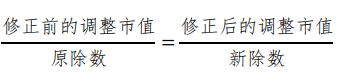 其中:修正后的调整市值=修正前的调整市值+新增(减)调整市值。由此公式得出新除数,并据此计算以后的指数。