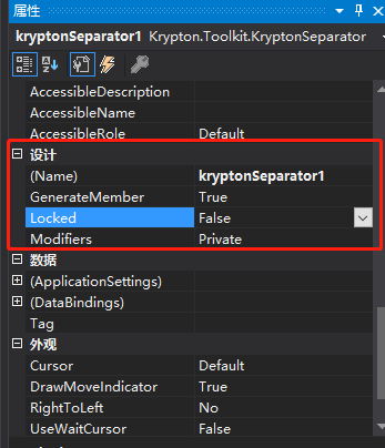 Locked属性:表示是否可以移动控件或调整控件的大小,属性值为Bool类型,属性值为True是,表示不可以移动。属性值为False时,表示可以移动。
