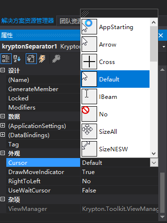 Cursor属性:表示鼠标移动过该控件的时候,鼠标显示的形状。属性值如下图所示: