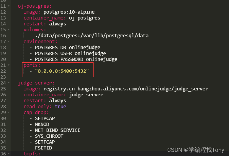 修改docker-compose.yml文件,在oj-postgres最后一行添加一行代码:
