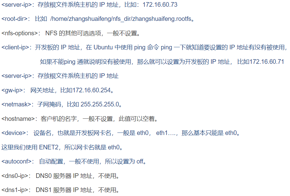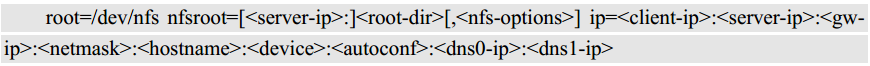参考文档为:Documentation/filesystems/nfs/nfsroot.txt 格式如下:
