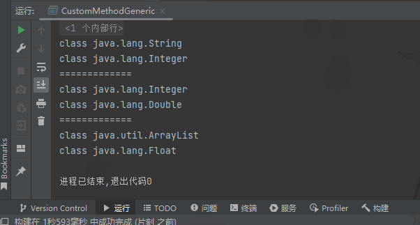 public class CustomMethodGeneric {public static void main(String[] args) {Car car = new Car();car.fly("宝马", 1000);//当调用方法时,传入参数,编译器,就会确定类型System.out.println("=============");car.fly(3000, 1000.23);//当调用方法时,传入参数,编译器,就会确定类型System.out.println("=============");//测试//T->String,R->ArrayListFish fish = new Fish<>();fish.hello(new ArrayList(), 1123.32f);}