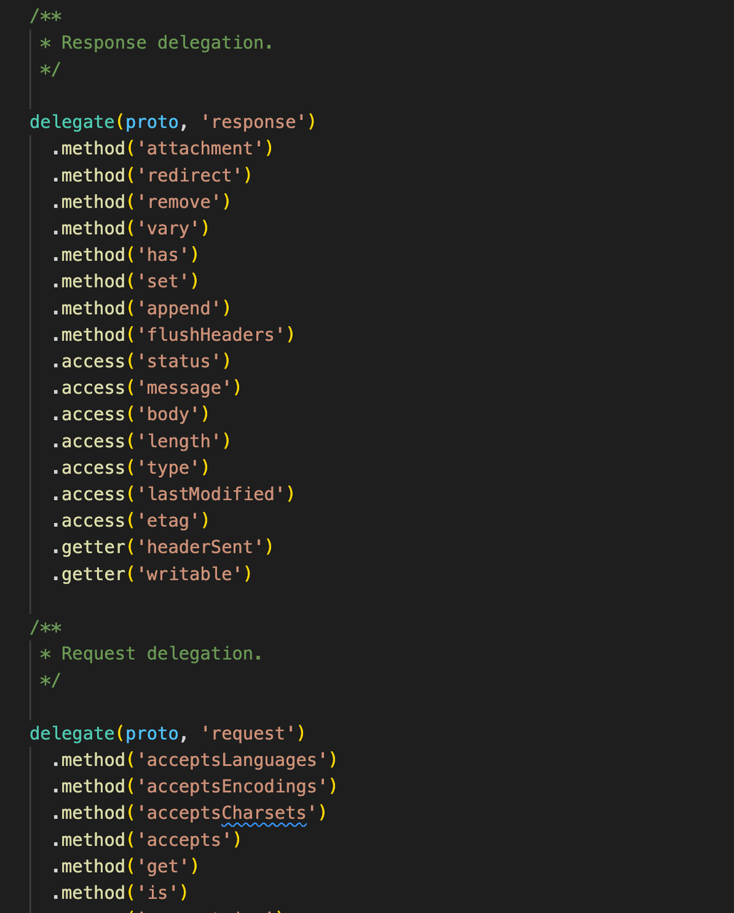 delegate方法是从delegates npm包进行导入(这个包的解读见# 每天阅读一个 npm 模块(7)- delegates - 掘金)