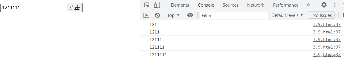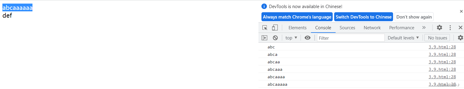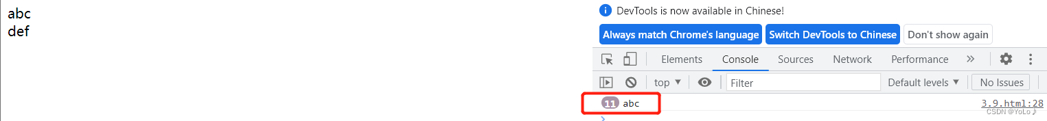 被打印的abc前面有一个数字11,是鼠标点击了11次,获得了11次该内容,chrome控制台默认会把相同的日志合并起来