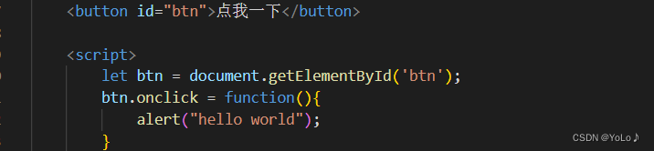 其中 btn.onclick = function() 这个操作称为 注册事件/绑定事件