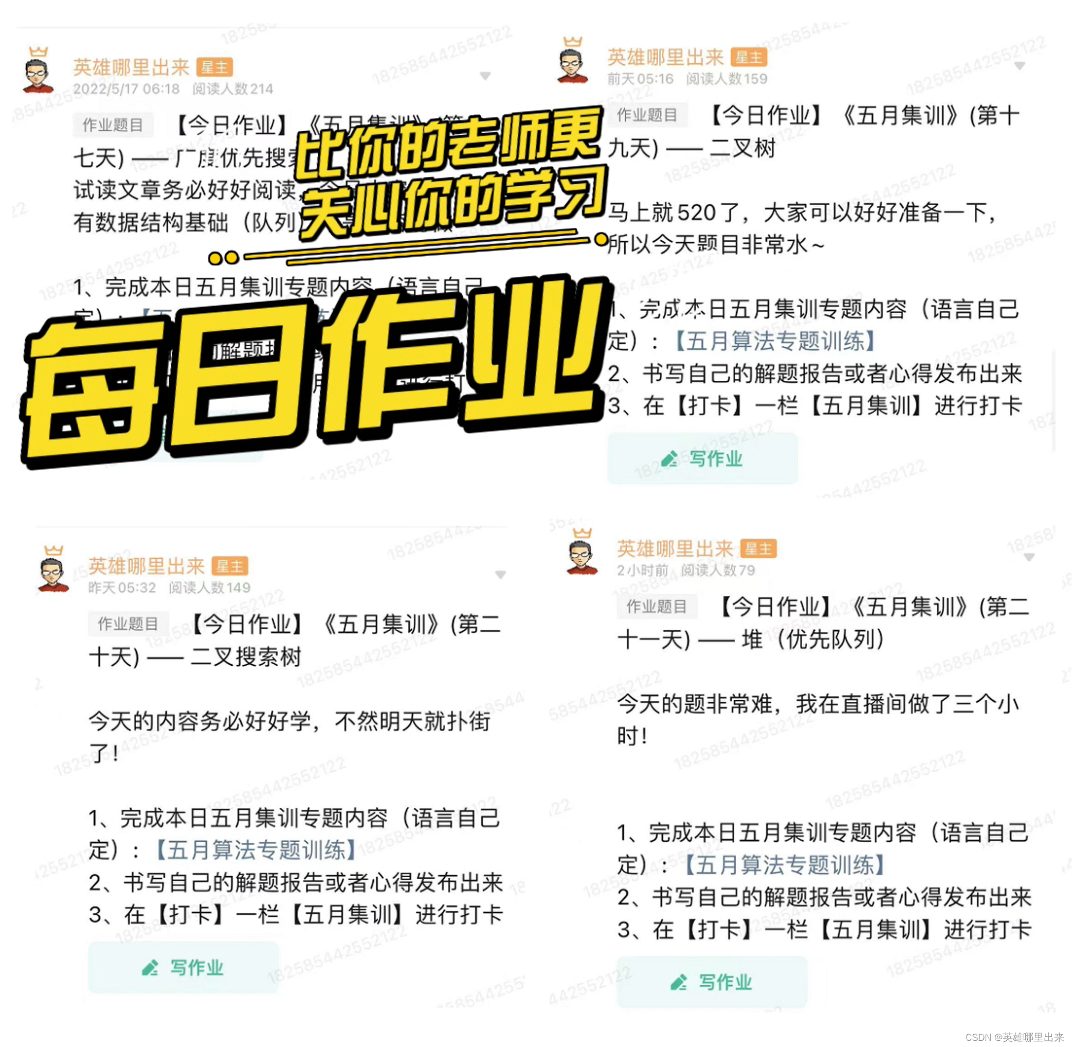 算法集训主要在我的【知识星球:英雄算法联盟】中进行,主要包括和群里的小伙伴一起学习算法、坚持刷题、坚持打卡、交流算法经验。公众号【夜深人静写算法】回复【星球】可以获取限量折扣优惠券。加入星球后,请务必联系星主加入微信群。